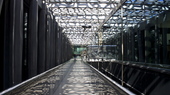 Musel pracovat s mnoha omezeními. Podloží zde bylo kvůli okolním dolům značně nestabilní, a bylo tedy riskantní stavět do výšky. Celá stavba je z modulů o šířce 17 metrů a celkové délce 86 metrů a stojí na vybetonované desce. Architekt navíc používal tehdy revoluční materiál, kterým byl přepjatý beton.
